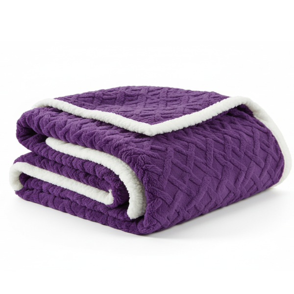 Pătură Cocolino cu Blăniță Tip Tricot – 200 x 230 cm, Fabricată în România MOV + Pătură Cadou